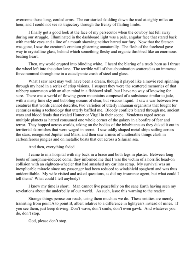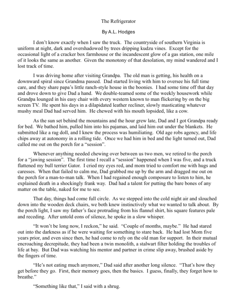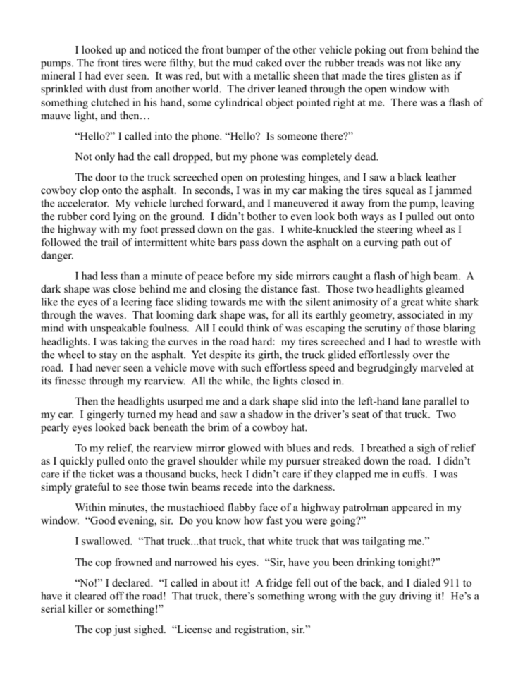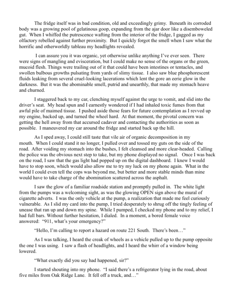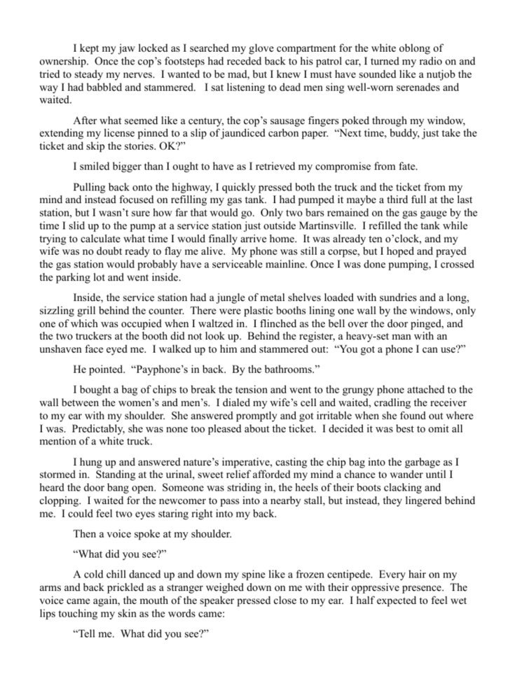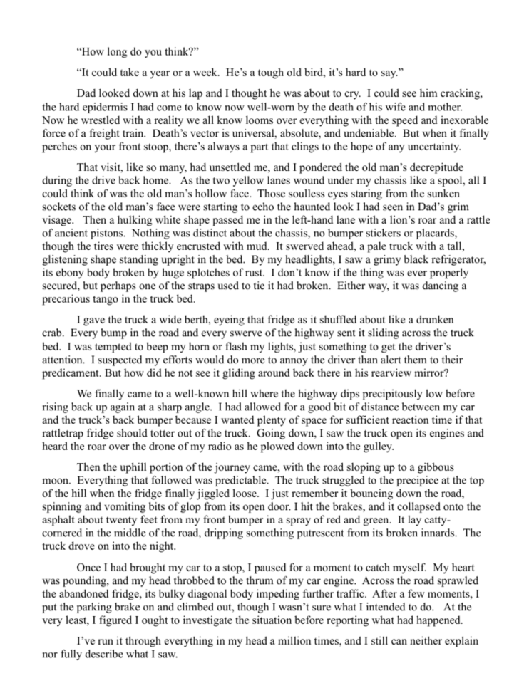 I composed this after almost dying in a car crash in the backwoods of Virginia. Though fictional, it comes from a place of real terror and the realization of my own mortality.